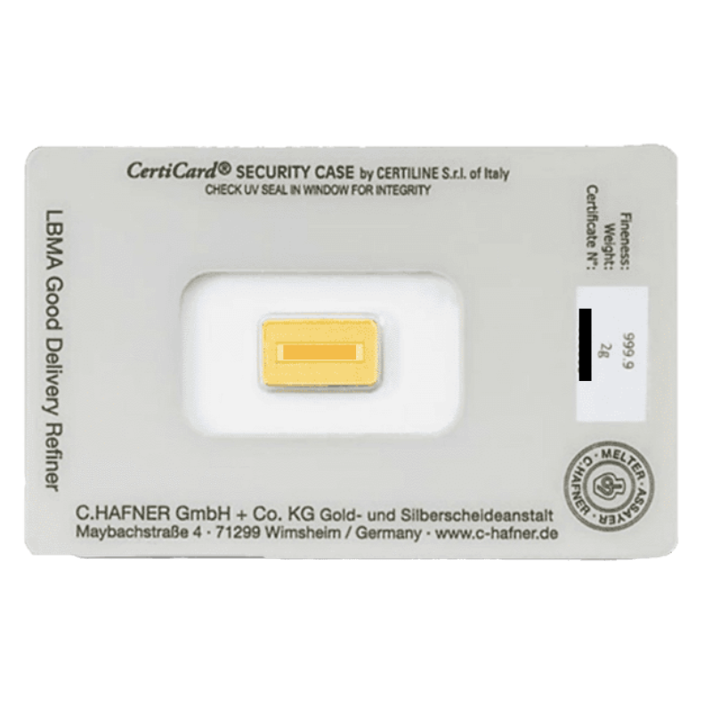 De C. Hafner 2 gram goudbaar is een uitstekende keuze voor beleggers die willen investeren in hoogwaardig fysiek goud met een gunstige premie.